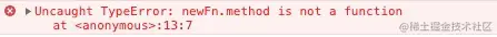 此时newFn实际就是{dd:'11'},执行newFn.method就会报错,因为此时newFn指向的是返回值,而不是Fn构造函数了,{dd:'11'} 上并没有method方法。