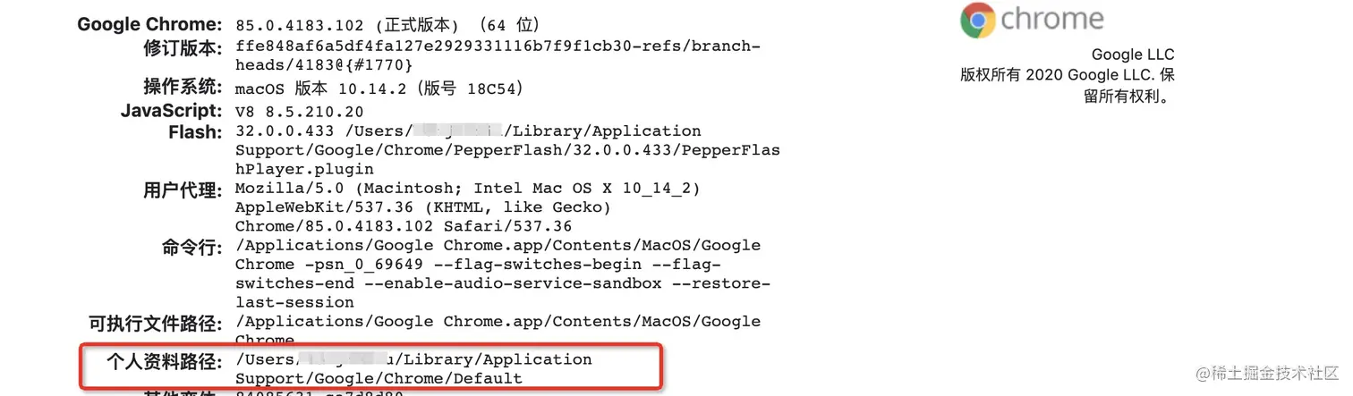 1.地址栏输入chrome:version 回车