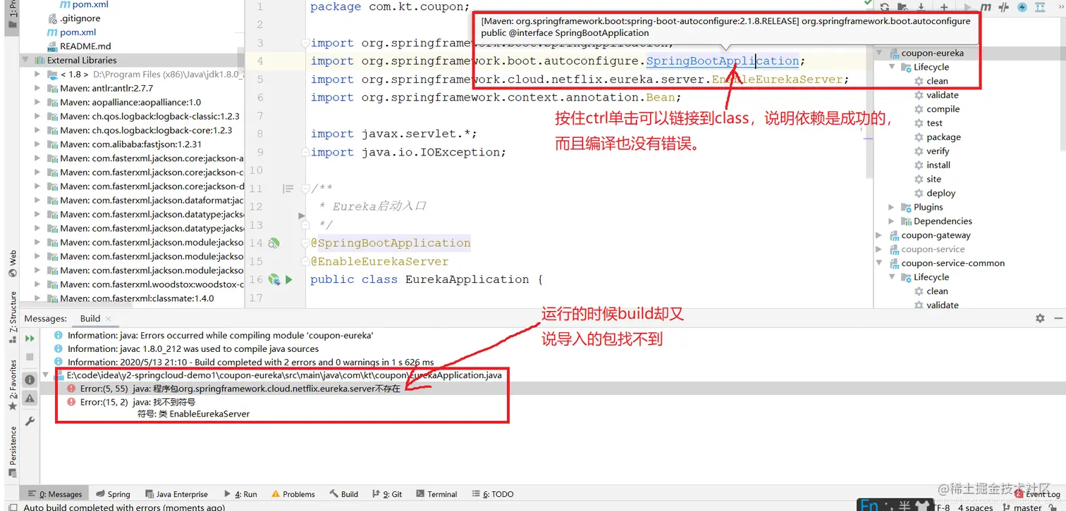 IDEA的Build(编译)操作和Maven的Build是分开的,并不是一回事。在出现这种问题的情况下,我甚至怀疑编辑器中的实时语法编译与Build时的classpath并不一致,否则不会出现这种诡异的情况。出现这个问题的原因无法证实,是不是IDEA本身的bug尚不得知。