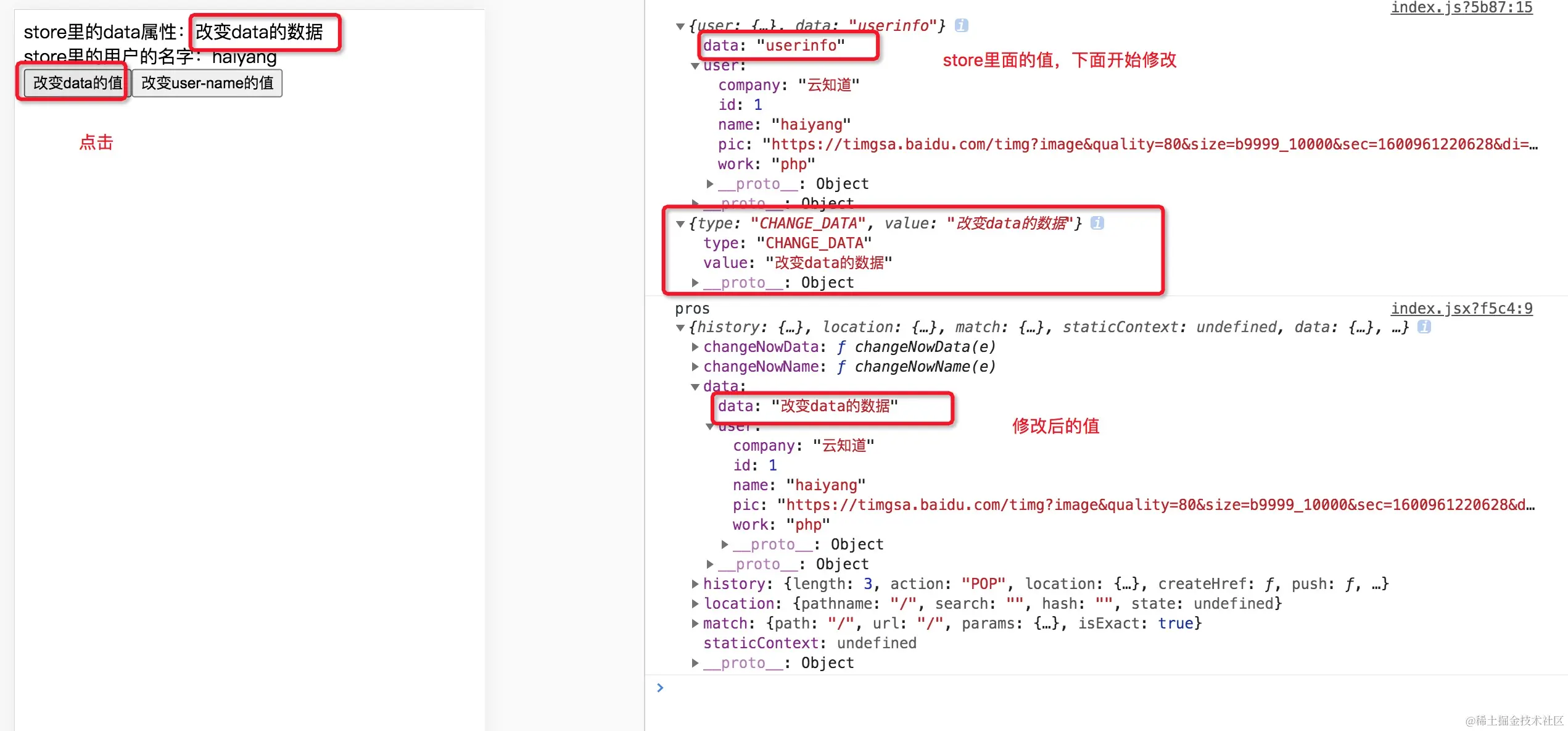 // changeNowData、changeNowName会加在当前的props里,然后diapatch去改变store的数据