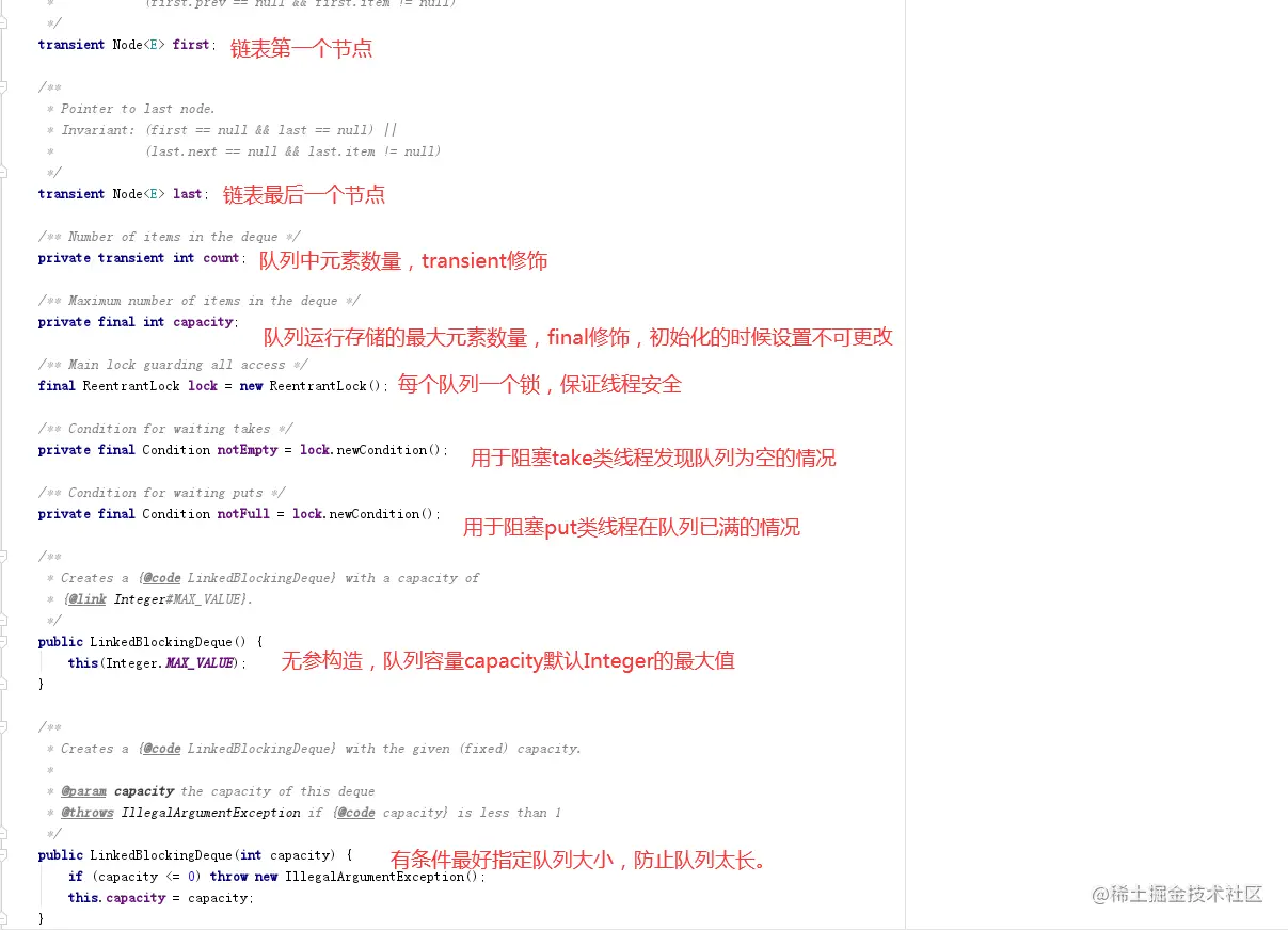 可以看到LinkedBlockingDeque与LinkedBlockingQueue几乎没有什么区别,主要属性基本一样。