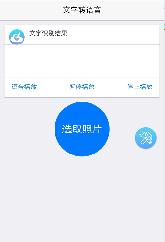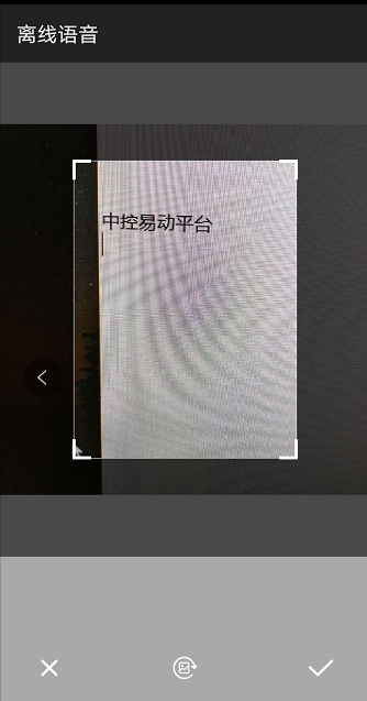 点击选取照片按钮,其中选择框可以自由滑动,识别框内的文字。
