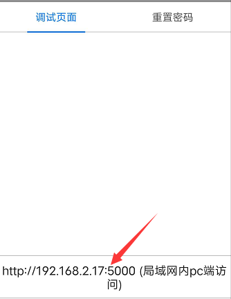 如果打包的app出现问题,我们如何调试呢,这里我们提供了在线调试工具,首先我们需要保证手机和电脑在同一个局域网下。点击下图中按钮,在浏览器中输入以下地址:
