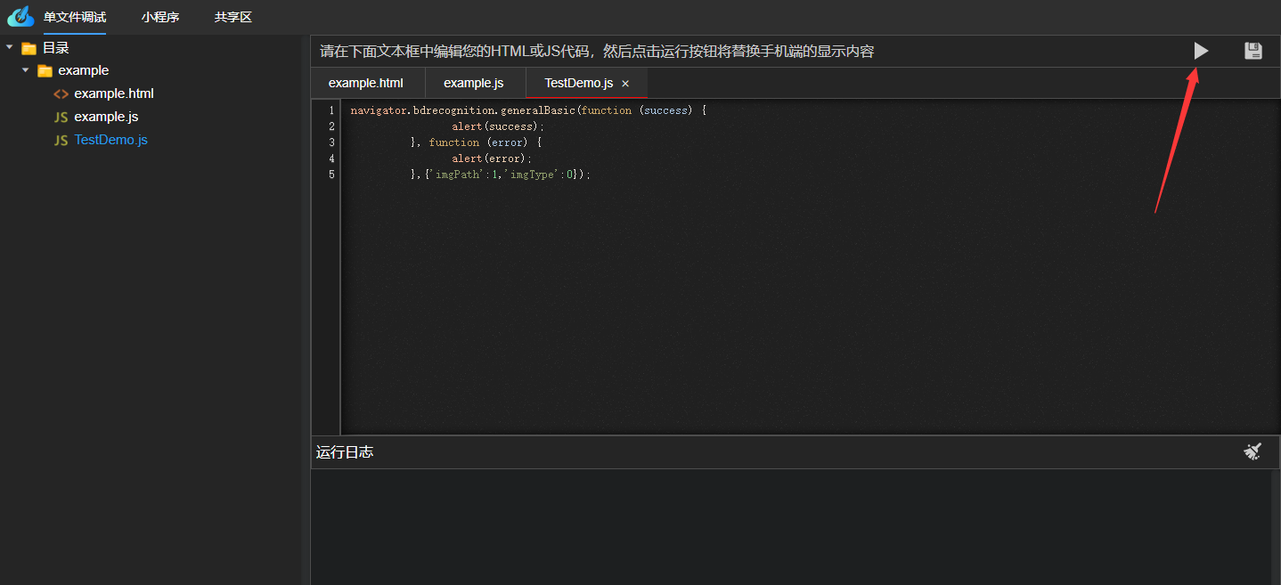 在TestDemo.js中输入此代码,点击运行即可: