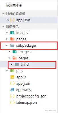 然后,在 app.json 的 subpackages 字段声明项目分包结构: