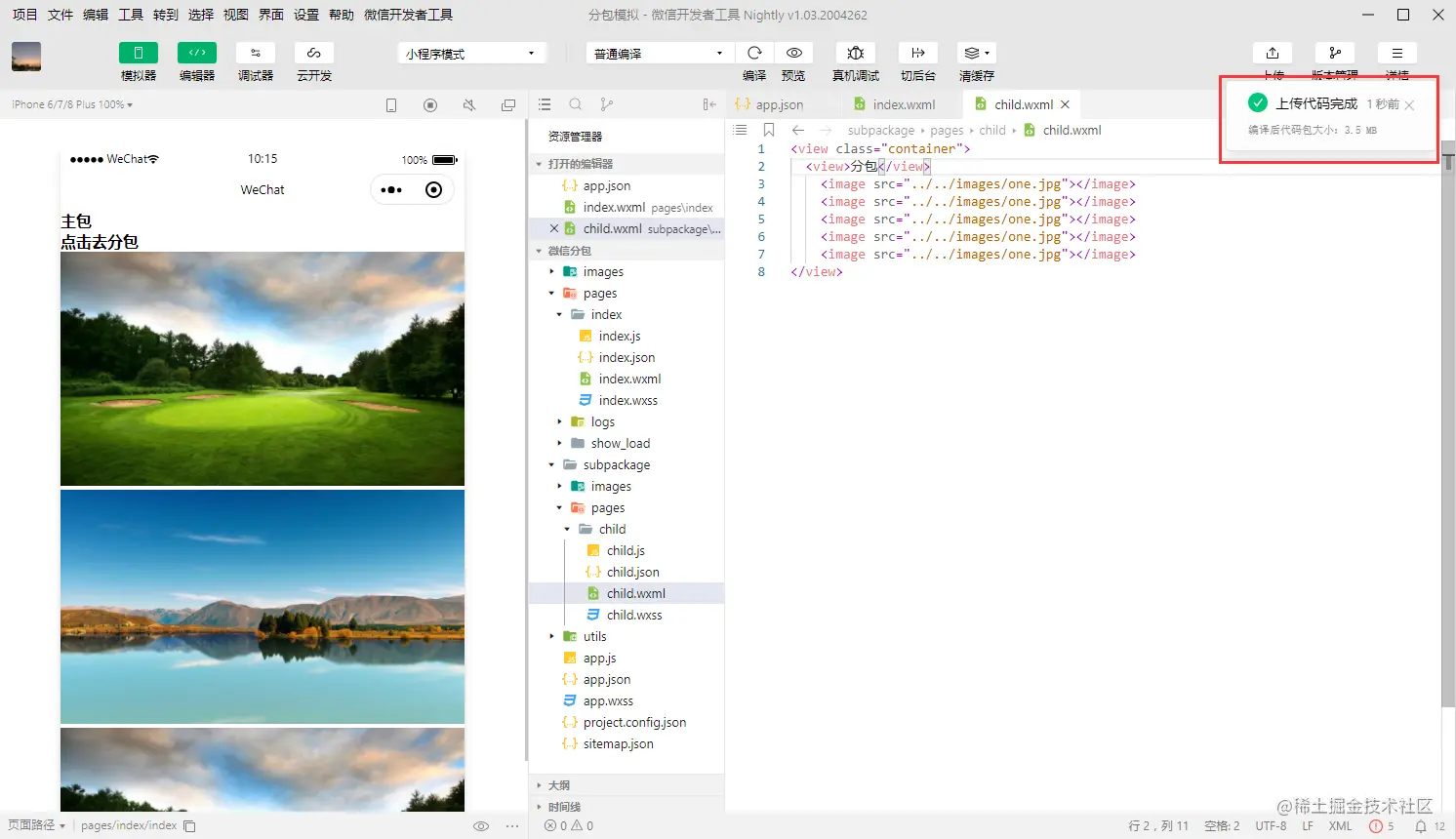 小程序代码有2M限制,导致我们开发起来畏手畏脚。现在我们可以通过分包,使整个小程序可以达到8M。