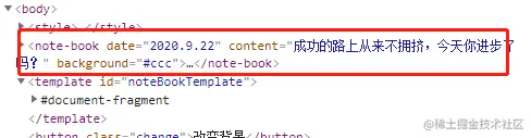 浏览器查看dom结构如下,可以看到直接使用了自定义标签note-book: