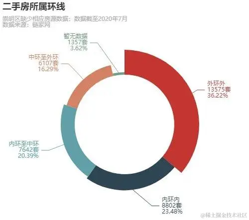 formatter="{b}\n{c}套\n{d}%")).set_global_opts(title_opts=opts.TitleOpts(title="二手房所属环线", subtitle="崇明区缺少相应房源数据;数据截至2020年7月\n数据来源:链家网 "), toolbox_opts=opts.ToolboxOpts()).render_notebook()