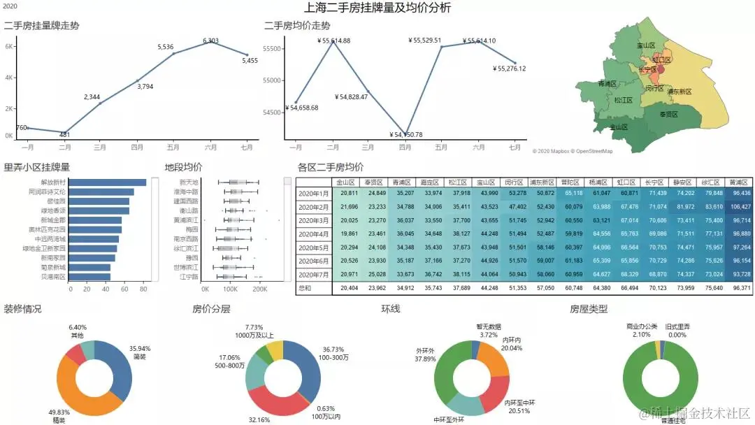 1,2020年上半年上海二手房挂牌量稳步上涨,均价在55100元/平米附近波动。 2,除了虹口区以外各区的二手房均价在第二季度都趋于缓和。 3,100万以下的房源几乎所剩无几,主要价位集中在100-300万 4,外环外的房源占比较大,是因为嘉定、闵行、宝山等区的挂牌量较高。 5,单身贵族喜欢的一室一厅房源仅剩下15.65%,连二手房房型的意思都是叫你赶紧找对象!