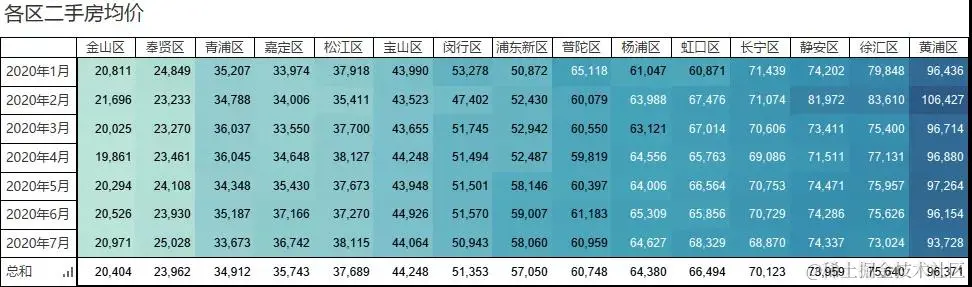 看看这可爱的渐变色,黄浦区这房价,一年赚的钱还不够买个厕所的。