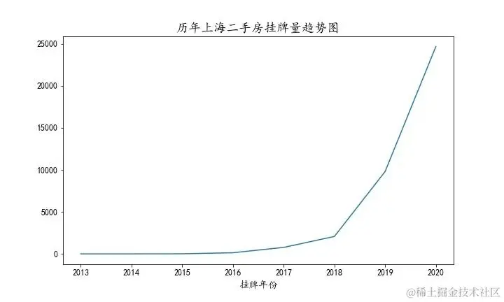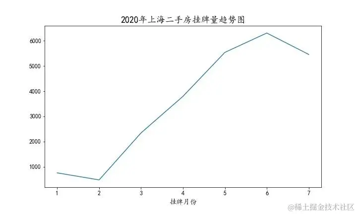 虽然从上图来看上海二手房挂牌量逐年递增,但是考虑到数据爬取日期为2020年7月23日,可能前些年挂牌的二手房已经出售,所以爬取不到挂牌信息。故不能由此判断今年二手房市场较往年更活跃。