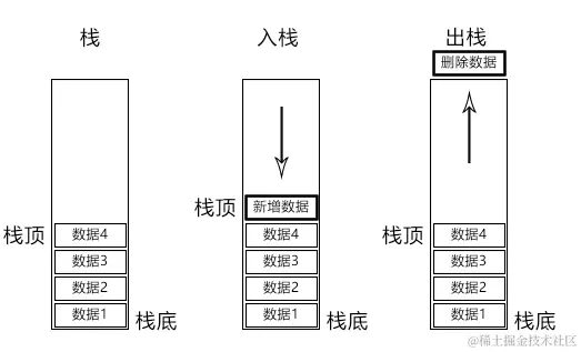 删除数据一般称之为出栈、退栈,它是把栈顶的数据删除掉,使其后方的数据成为新的栈顶。