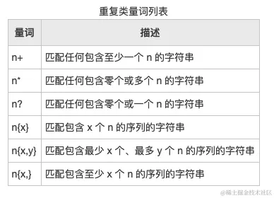 • {n,m}?:尽量匹配 n 次,但是为了满足限定条件也可能最多重复 m 次。