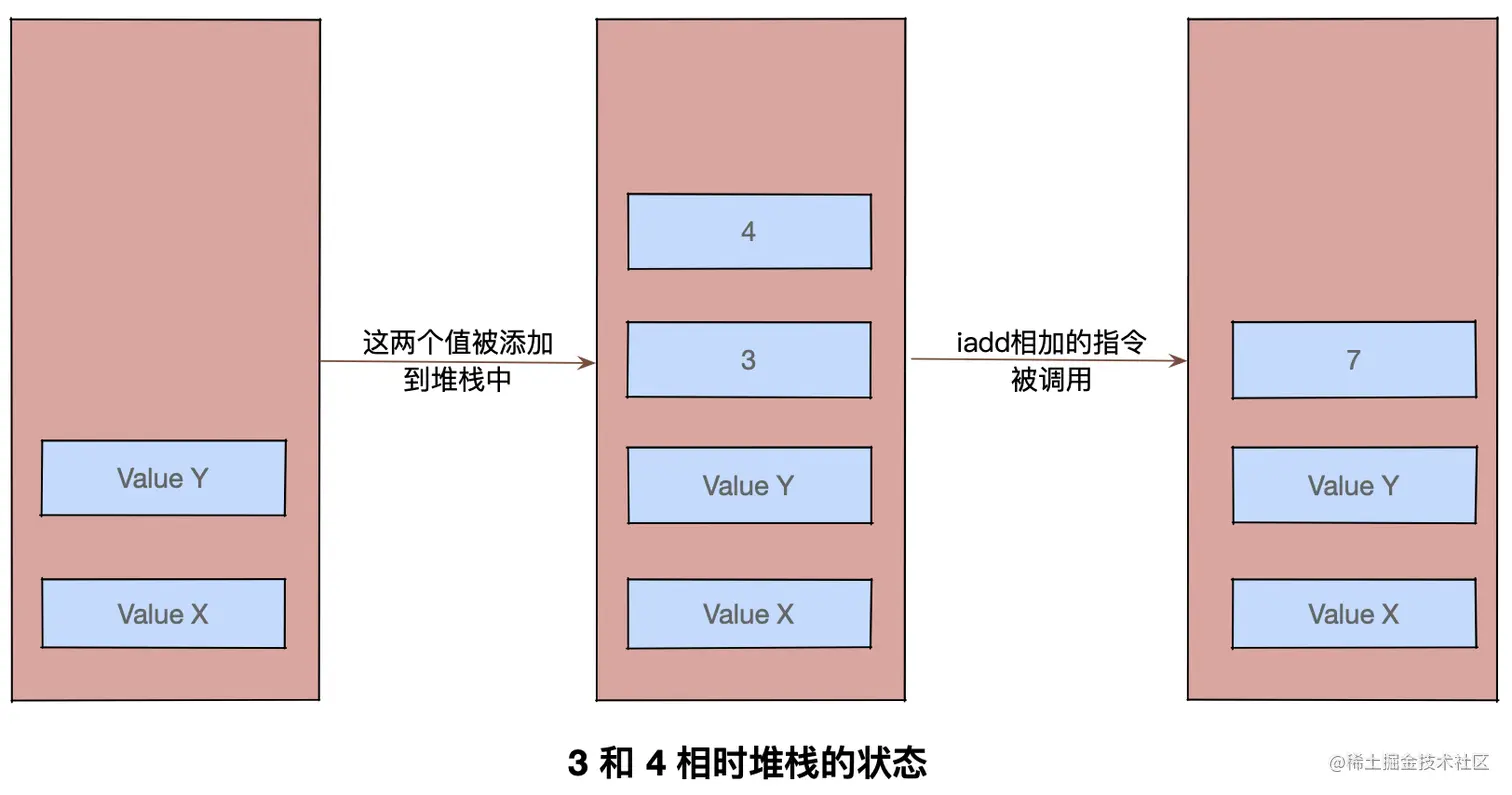 - 将 int 结果(3+4)压入操作数堆栈,以提供给其它操作使用。