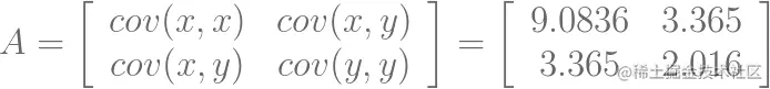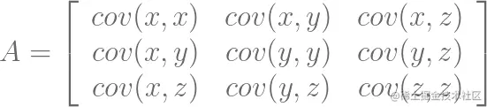 Notice that the covariance matrix is real-valued and symmetric, which means that we are guaranteed to have three eigenvectors in the similarity transformation (change of basis matrix) when we diagonalize.