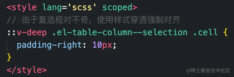 注意:这里使用了样式穿透,而样式穿透有多种写法,这里只建议使用 ::v-deep,因为这是官方推荐写法,而 >>> 和 /deep/ 都会在一定场景下失效(具体可以百度,例如:项目中没有使用 node-sass,而是使用的其他支持 sass 的插件,因为 node-sass 下载太慢了)。
