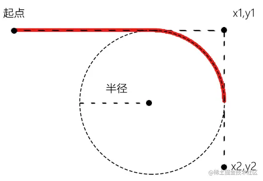 arcTo(x1,y1,x2,y2,半径)