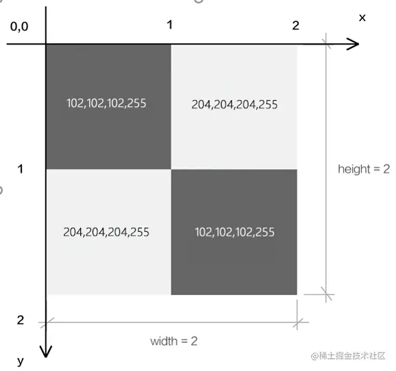 - 像素为最小单元(栅格),每个像素具有RGBA数据,像素数量等于画布长*宽