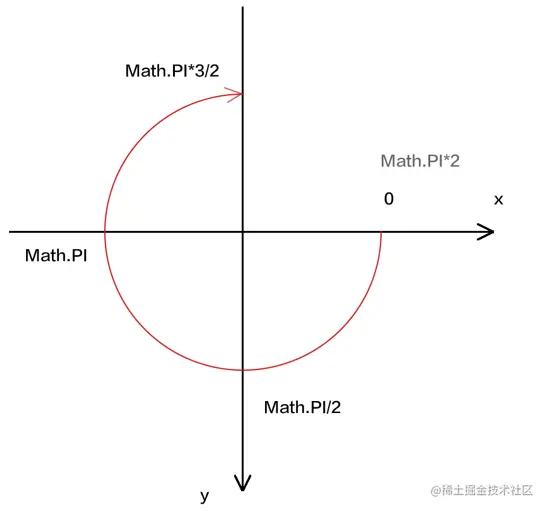 - x轴往右越大,y轴往下越大