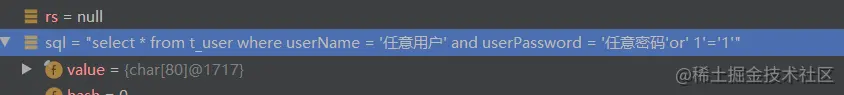 问题就在于userName变量+password变量需要通过拼接组装成字符串(sql语句),而变量通过接受得到的拼接使用的是' '单引号拼接。