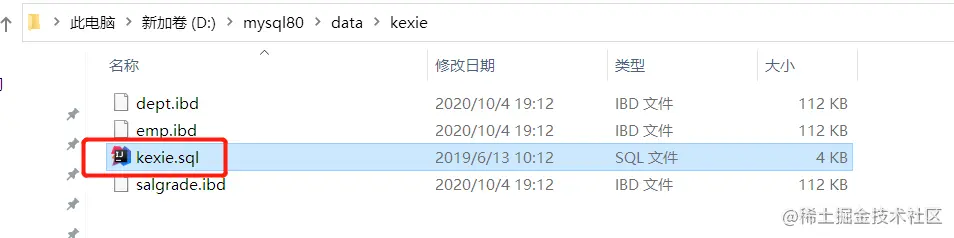 # 复制上面路径,进入到kexie文件,把kexie.sql复制到kexie文件中去。