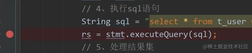 在封装Sql语句的stmt对象后设置断点,Debug分析其中原因。