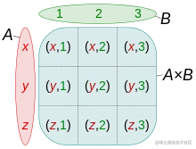 笛卡尔积就是把两个集合中的每一项两两组合,得到一个新的集合,在数据库中,就是把两张表中的数据两两组合。