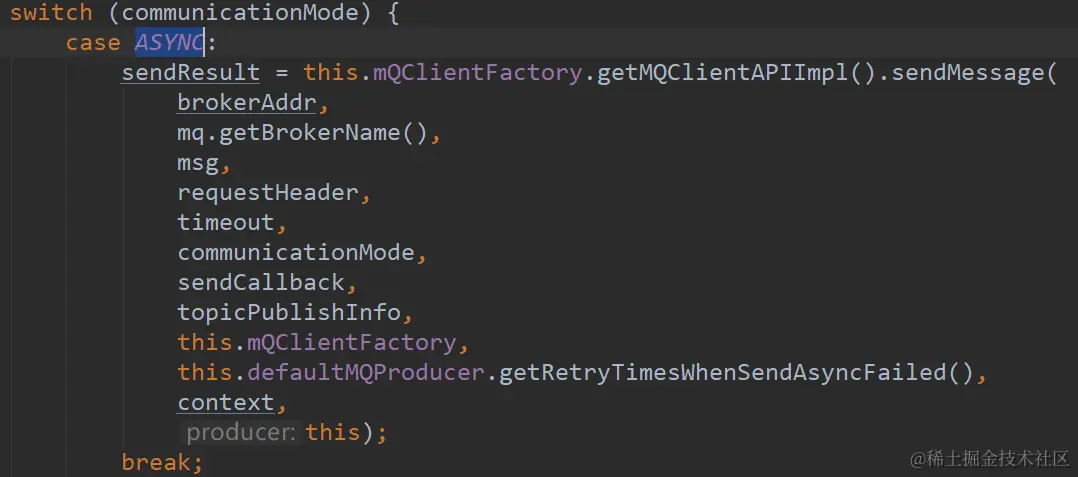 对消息进行发送,这里选取ASYNC模式进行分析