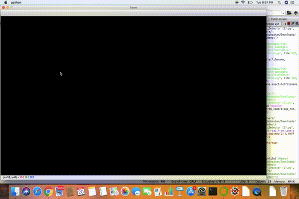 要捕获视频,需要创建视频捕获对象。它的参数可以是设备索引或视频文件的名称。设备索引只是指定哪个摄像机的数字。通常会连接一个摄像头(如我的情况)。所以我只传递0(或-1)。可以通过传递1等来选择第二个摄影机。之后,你可以逐帧捕获。
