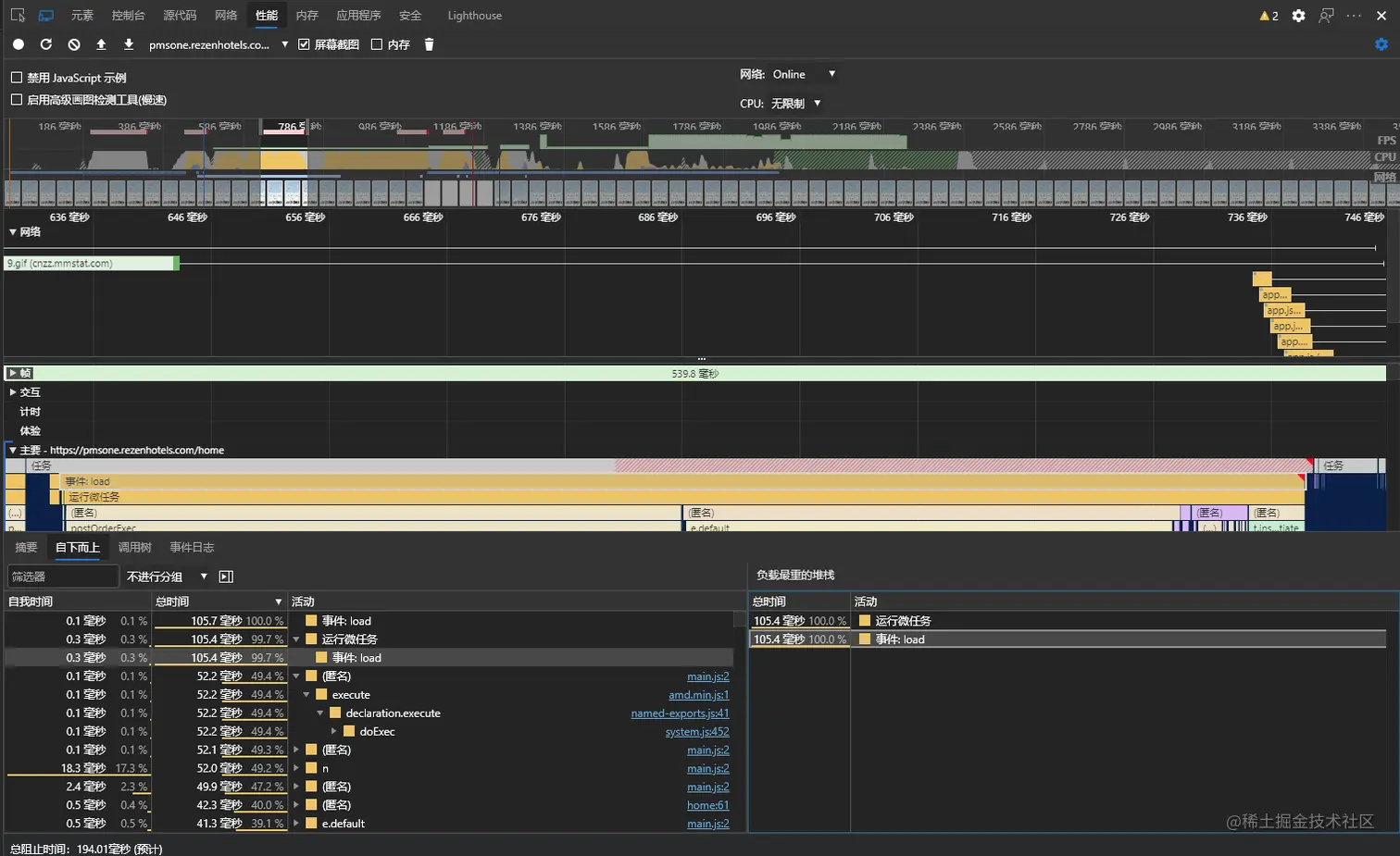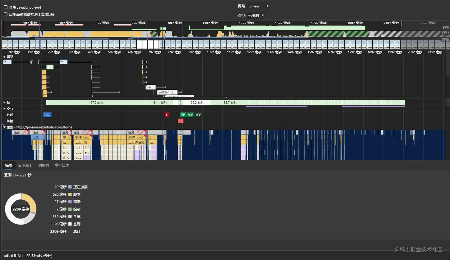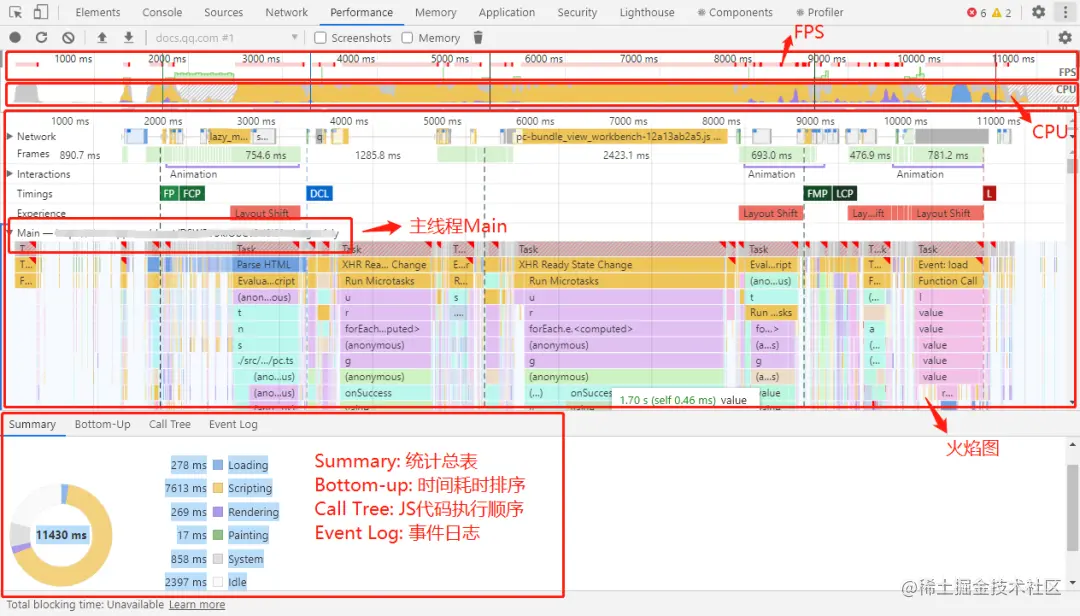 使用performance面板分析性能分析具体性能