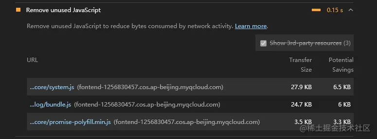 "移除没有用到的 JavaScript"
