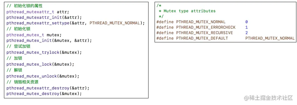 如上面,锁的类型是默认时,初始化可以简化成:pthread_mutex_init(mutex, NULL);