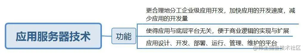 应用服务器是在当今 Internet 上企业级应用迅速发展 、 电子商务应用出现并快速膨胀的需求下产生的一种新技术,通过它能将一个企业的商务活动安全有效地实施到 Internet 上,实现电子商务。它并非一种传统意义上的软件,而是一个可以提供通过 Internet 来实施电子商务的平台。在分布式 、 多层结构及基于构件和服务器端程序设计的企业级应用开发中,它提供的是一个开发 、 部署 、 运行和管理 、 维护的平台。它可以提供软件 “ 集群 ” 的功能,因而可以让多个不同的 、 异构服务器协同工作 、 相互备份,以满足企业级应用所需要的可用性 、 高性能 、 可靠性和可伸缩性等。故而,从某种意义上说,应用服务器提供了一个 “ 企业级应用的操作系统 ” 。