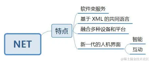 .NET 的最终目的就是让用户在任何地方 、 任何时间,以及利用任何设备都能访问他们所需要的信息 、 文件和程序。而用户不需要知道这些东西存在于什么地方,甚至连如何获得等具体细节都不需要知道。他们只需发出请求,然后只负责接收即可,而所有后台的复杂性是完全屏蔽起来的。故而,对于企业的 IT 人员来说,工作量将大大减少,他们也不需要管理复杂的平台及了解各种分布应用之间的工作是如何协调的。 .NET 包括4个重要特点:一是软件变服务,二是基于 XML 的共同语言,三是融合多种设备和平台,四是新一代的人机界面。这4个特点基本上复盖了 .NET 的技术特征。