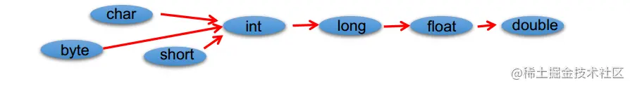 特别地,byte,short,char之间不会相互转换,他们三者在计算时首先转换为int类型 byte + byte → int byte + short → int