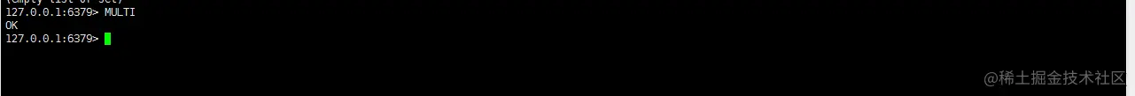 通过MULTI开启一个事务,这个命令在成功开启之后将返回ok。
