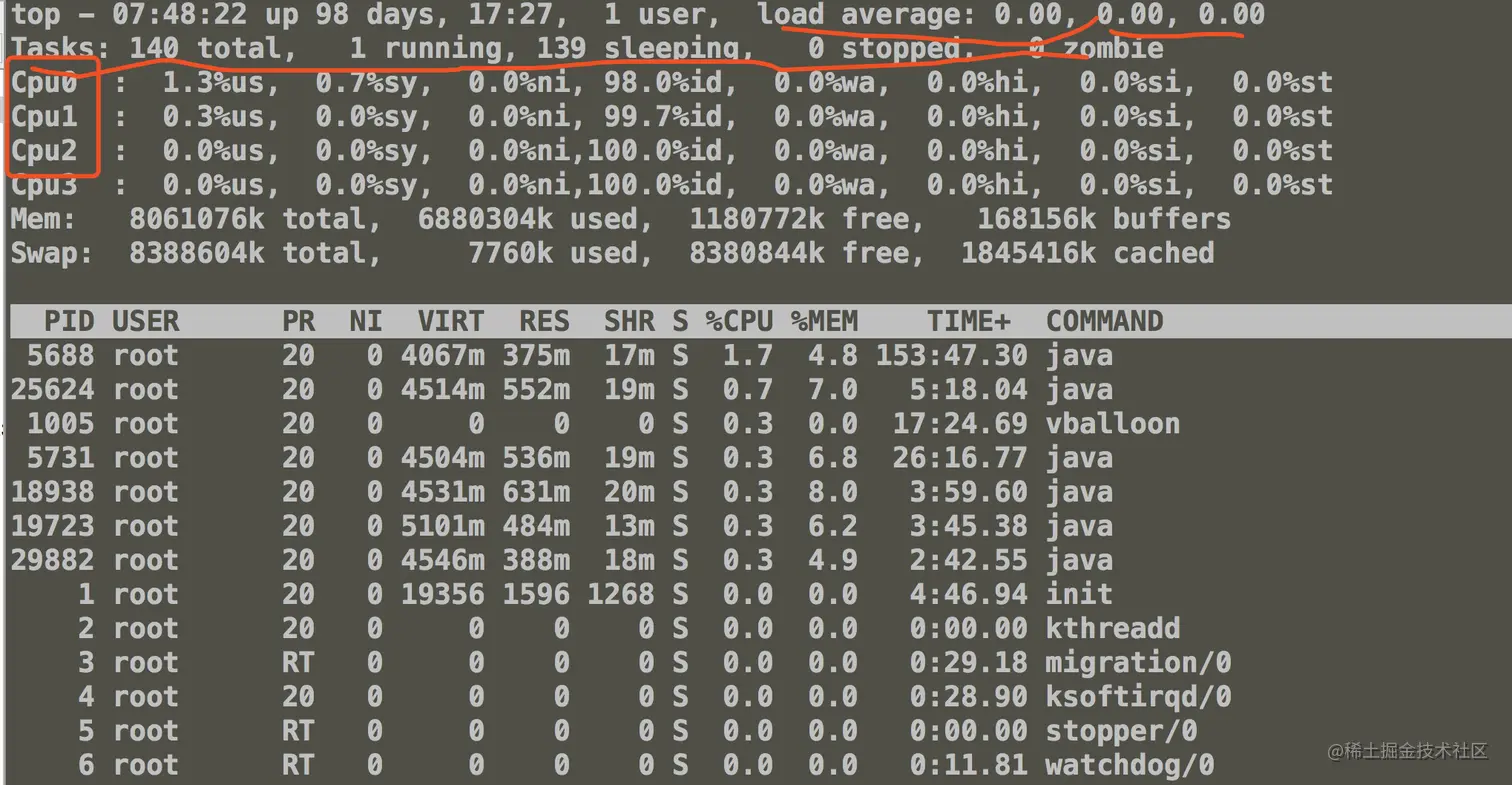 一般地,我们比较关注空闲 CPU 的百分比,它可以从整体上体现 CPU 的利用情况。