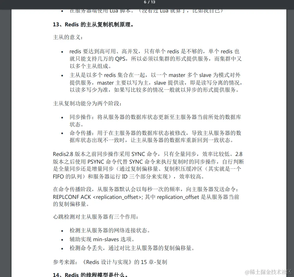 Redis 的主从复制机制原理