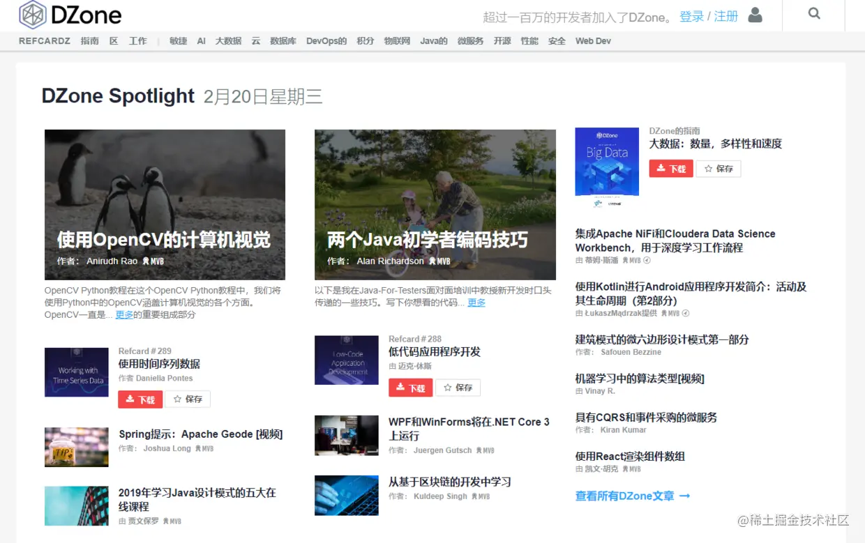 超过一百万的开发人员属于DZone,对于今天的编程专业人员和开发人员而言,DZone成为著名的编程新闻中心。该站点涵盖了从敏捷开发到云开发,大数据,集成,性能等等的所有内容。DZone是来自行业各个角落的最新见解的宝贵资源。