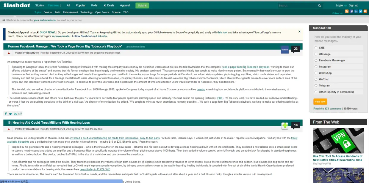 SlashDot是一个庞大的交互式资源,其中包含与技术和编码有关的所有最新博客文章和新闻报道。借助真实的社区氛围,SlashDot由一小群编辑和真实的程序员为开发人员提供专业的技术文章。