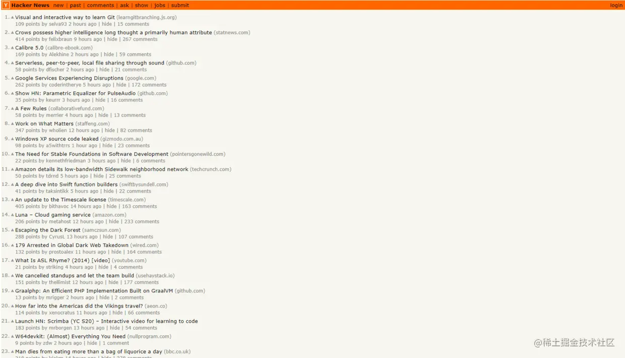 很类似Reddit,不过它仅面向开发人员。黑客新闻是开发人员新闻的门户网站,这些新闻与在任何给定时间可能会困扰您的所有事情有关。任何IT界重大的新闻都会被在这里热烈讨论,如果你不想错过任何程序界的大事,那你就一定要经常逛一逛它。