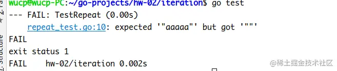t.Errorf("expected '%q' but got '%q'", expected, repeated)