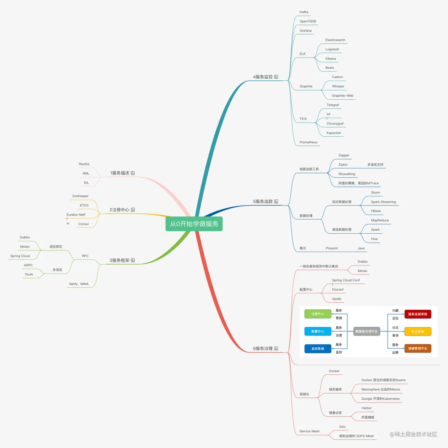 这6部分组合起来才称之为微服务。下面的链接是我做的一个思维导图,导图里面的有些内容我还没有完全学会,后期会做进一步的整理,如果大家喜欢的话,可以先记一下这个链接。