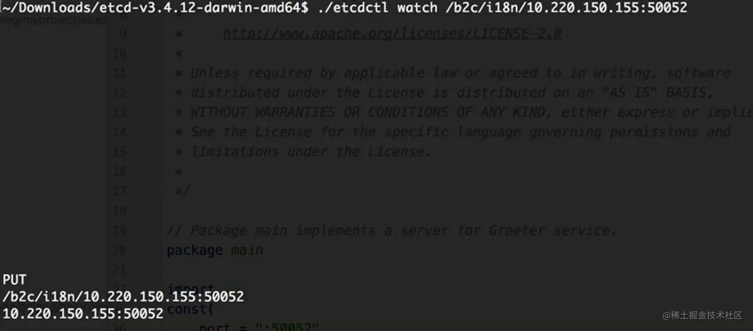 - 启动另一个被调用服务,端口号为50052,该服务也会被注册到ETCD上,调用者通过watch能发现两个服务