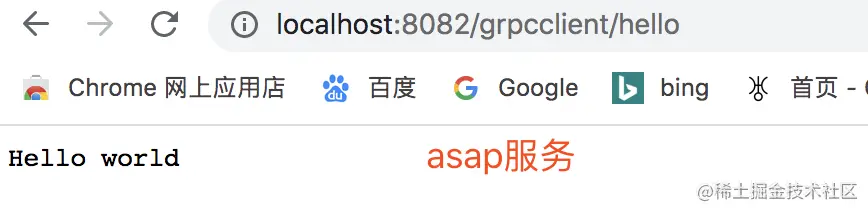 package grpcclient import ( "github.com/gin-gonic/gin" "google.golang.org/grpc" "net/http" "os" "time" pb "asap/lib/helloworld" "log" "context" ) const ( address = "localhost:50051" defaultName = "world" ) func Hello(contextGin *gin.Context) { // Set up a connection to the server. conn, err := grpc.Dial(address, grpc.WithInsecure(), grpc.WithBlock()) if err != nil { log.Fatalf("did not connect: %v", err) } defer conn.Close() c := pb.NewGreeterClient(conn) // Contact the server and print out its response. name := defaultName if len(os.Args) > 1 { name = os.Args[1] } ctx, cancel := context.WithTimeout(context.Background(), time.Second) defer cancel() r, err := c.SayHello(ctx, &pb.HelloRequest{Name: name}) if err != nil { log.Fatalf("could not greet: %v", err) } log.Printf("Greeting: %s", r.GetMessage()) contextGin.String(http.StatusOK, r.GetMessage()) }