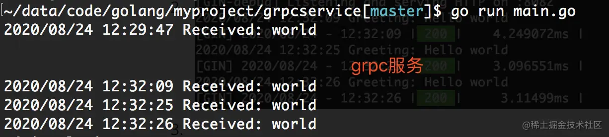 5. 调用服务,可以发现,请求会分别发送到端口50051和50052上