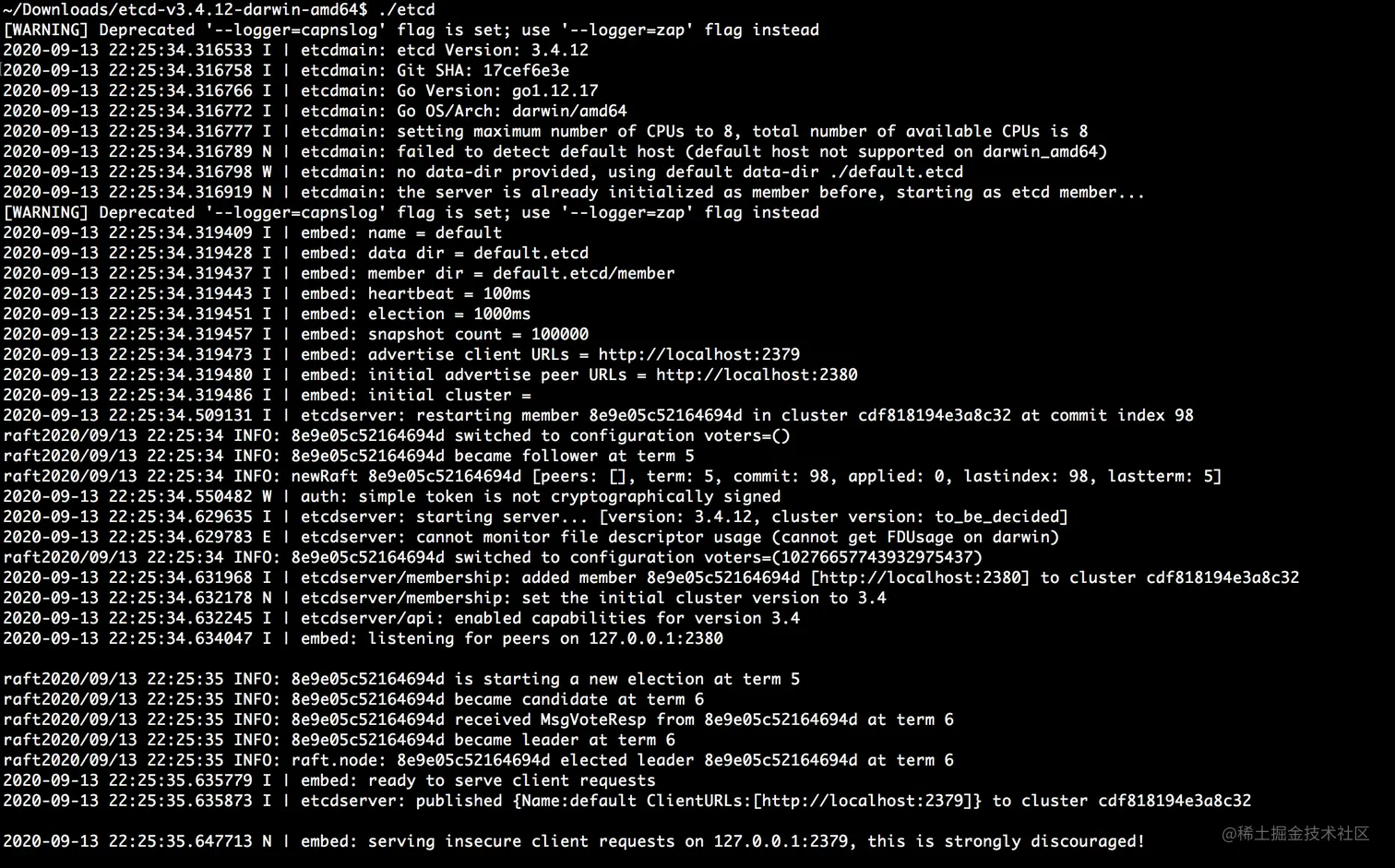 进到文件,执行./etcd开启etcd服务,只不过不是集群的