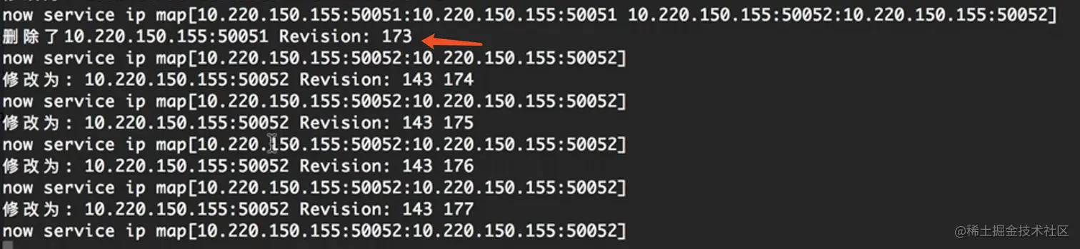 fmt.Println("删除了" + strings.TrimPrefix(string(event.Kv.Key),serviceName), "Revision:", event.Kv.ModRevision)