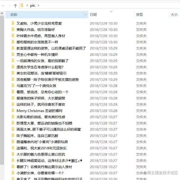 好了,之后运行,我们的爬虫就会孜孜不倦的为我们下载漂亮妹子啦。最后多说一句,小编也是一名python开发工程师,这里有我自己整理的python学习资料和一些有趣的源代码想要这些资料的可以关注小编私信,或者加小编的python学习交流企鹅群:1075110200。