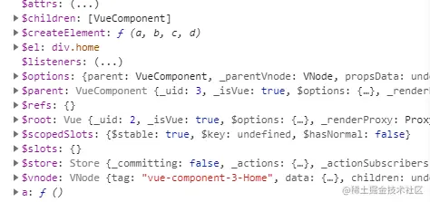4.this.parent可以调用父组件的函数refs之类的执行传值,下图是打印出this.parent,可知我们可以调用父组件的方法和refs